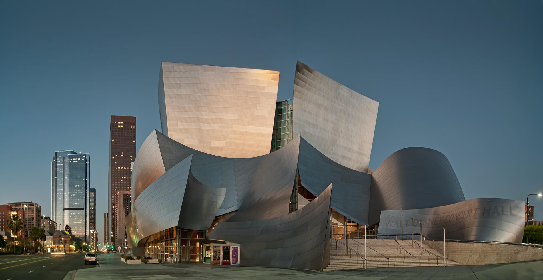Its stainless-steel curves catch sunlight and shadow throughout the day, creating an ever-changing façade that symbolizes Los Angeles’ evolving artistic identity. Inside, the warm Douglas-fir acoustic shell wraps audiences in a space where design and performance merge seamlessly.