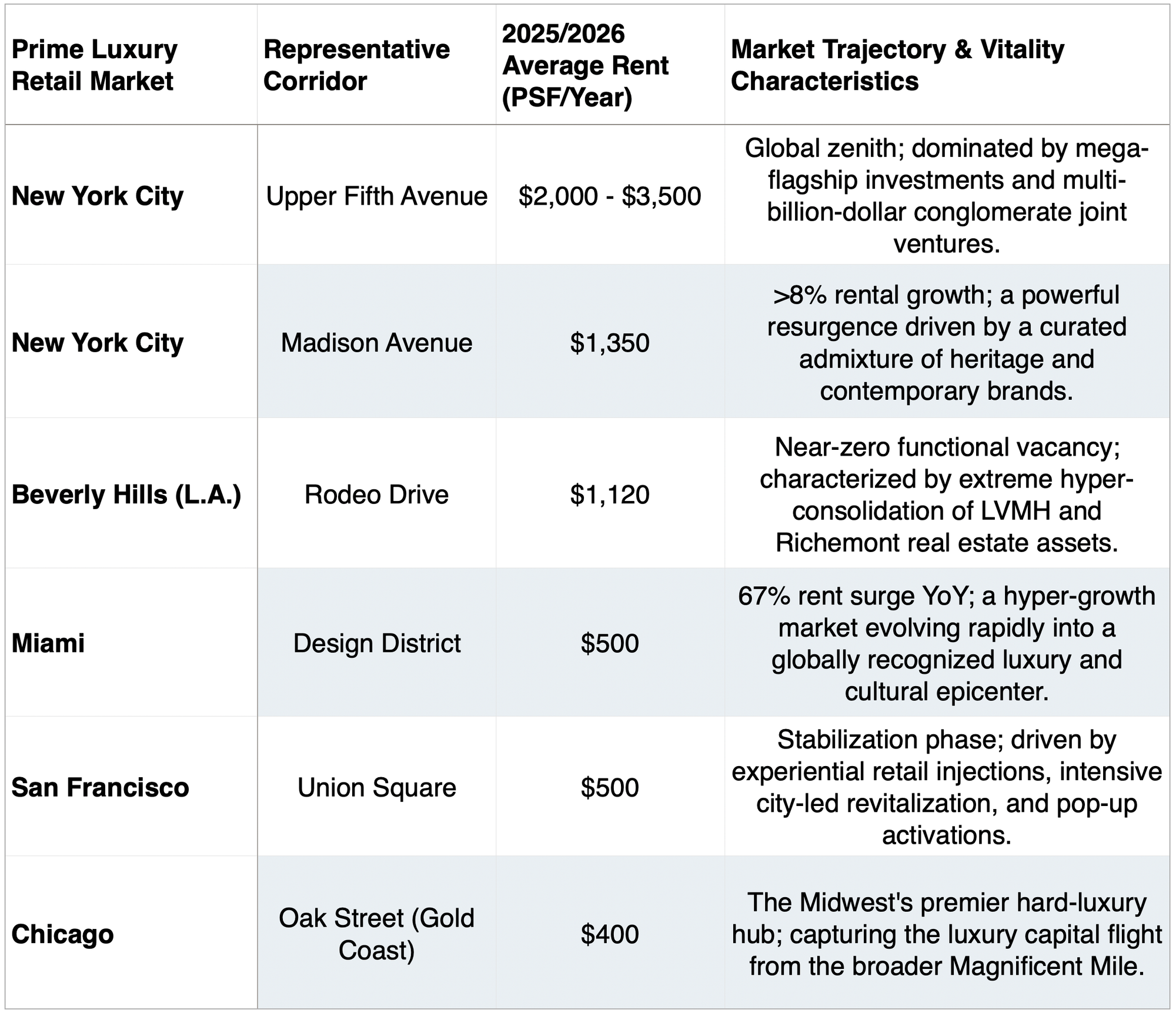 Table 2. Prime Luxury Retail Overview